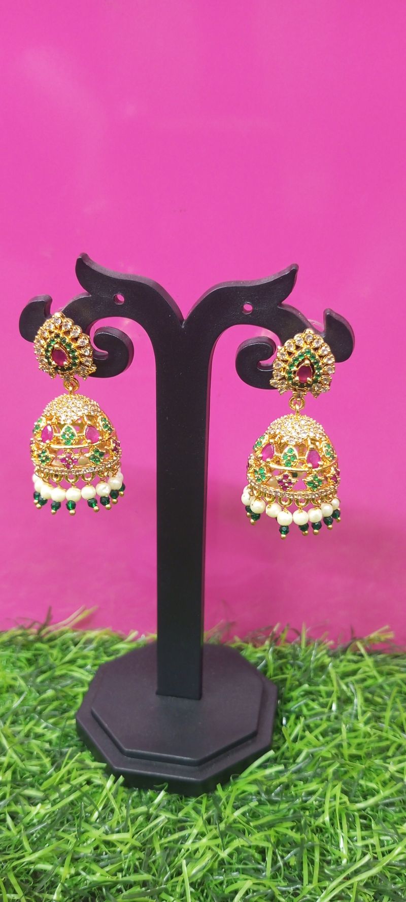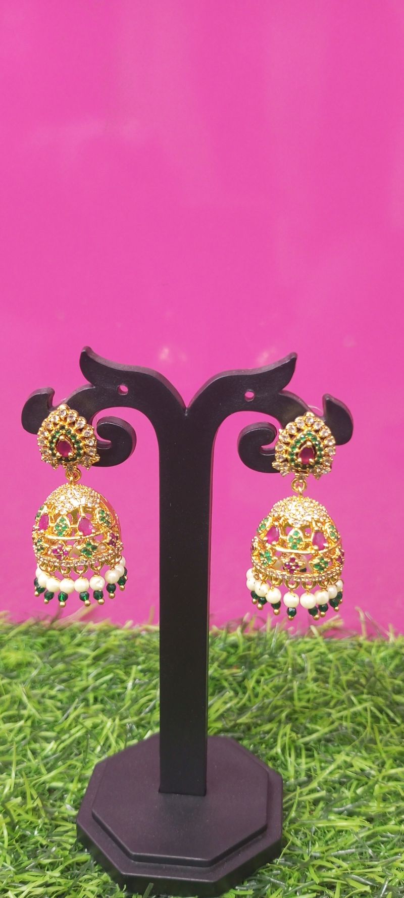 Gold plated green bead earrings