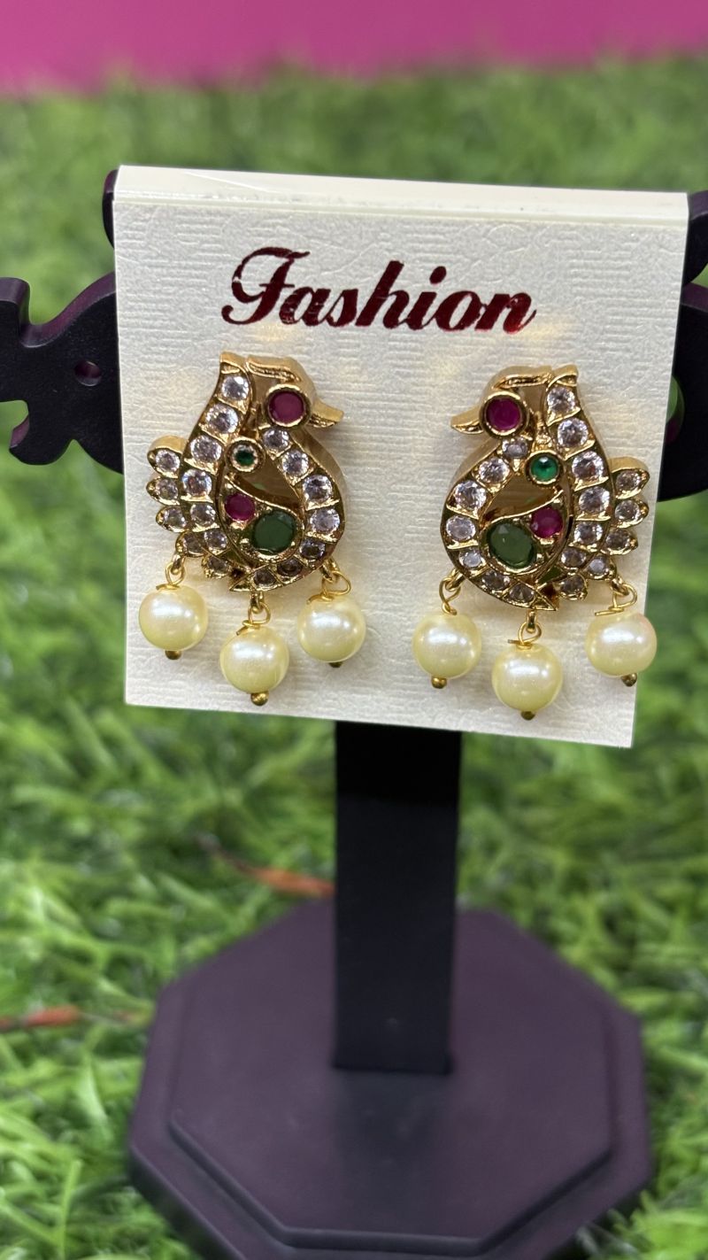 3 bead hen design earrings
