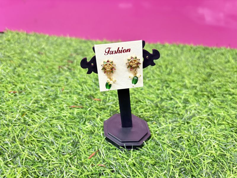Star design green bead earrings